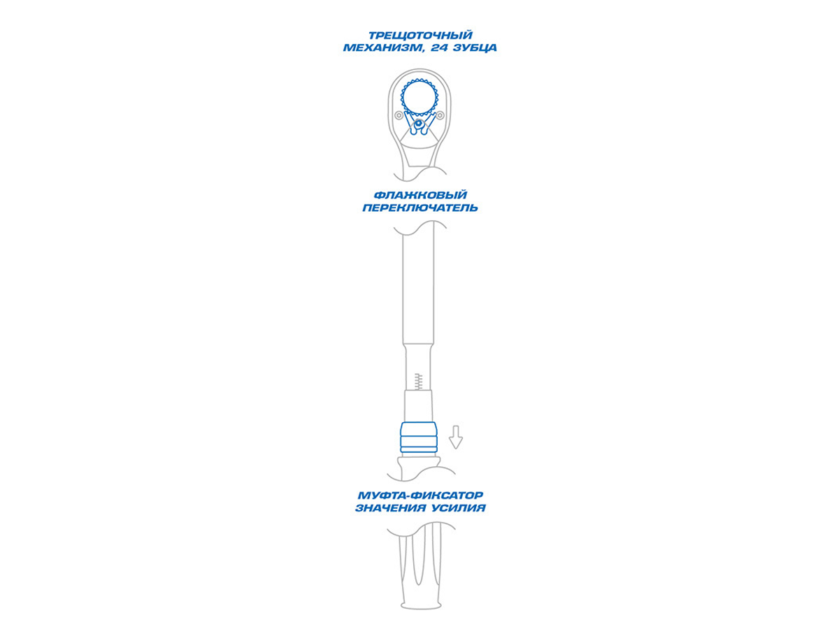 - Механизм фиксации установленного значения срабатывания ключа исключает случайный поворот рукоятки