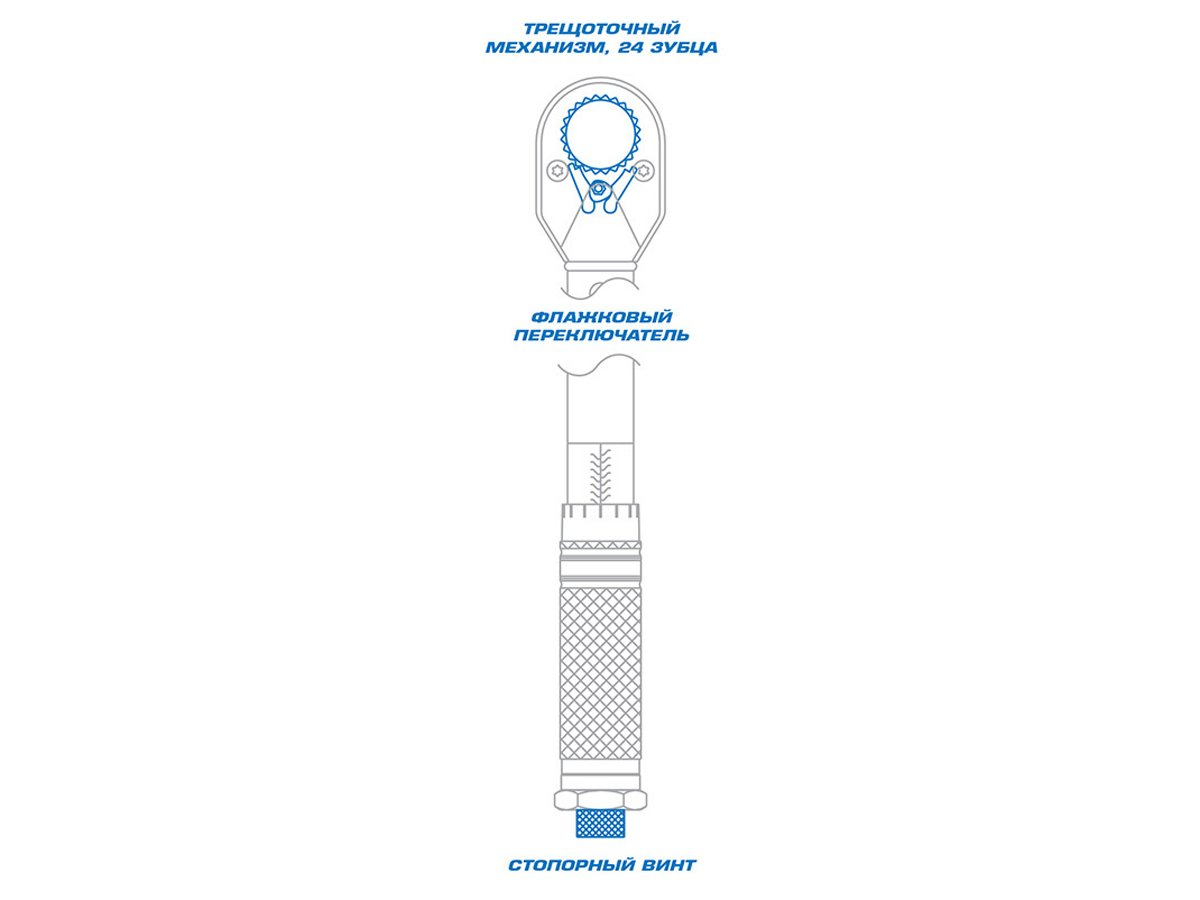 - Трещоточный механизм: 24 зубца