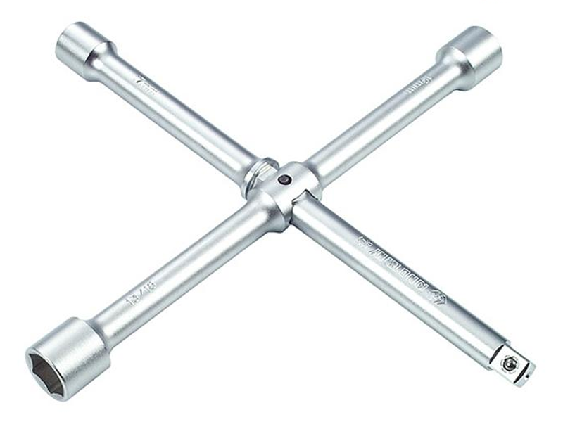Ключ включает в себя наиболее часто применяемые размеры для колёсного крепежа и привод под 1/2", который позволит присоединить головку формата 1/2" любого другого размера.