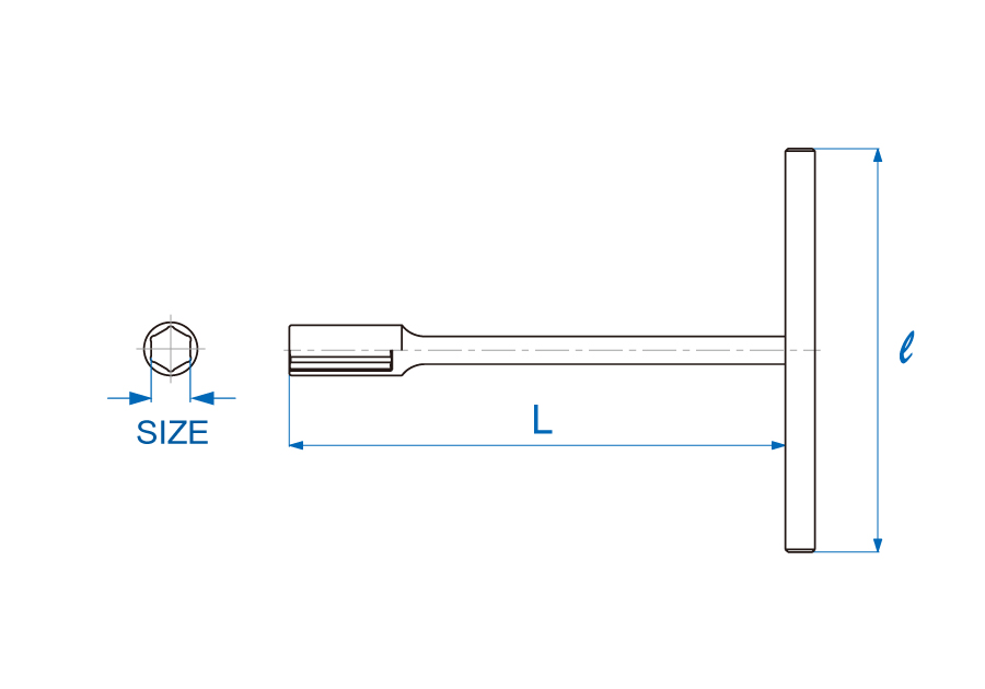 - Т-образная рукоятка и удлинённая рабочая часть ключа удобны при работе с торцевым крепежом, расположенном в углублении.