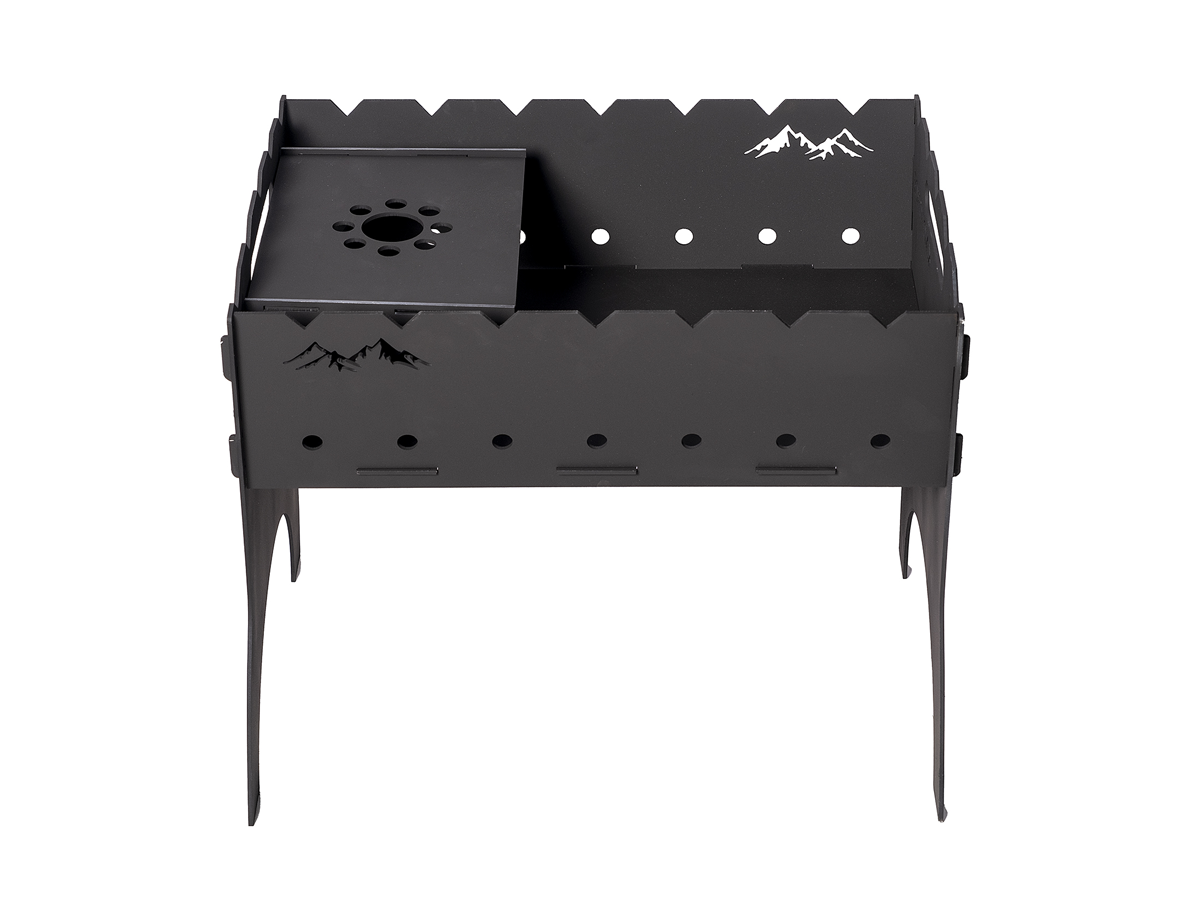 - Удобная конструкция с подставкой под чайник позволяет быть мангалу компактным и мобильным - Вы можете взять его с собой на природу, кемпинг или легко перемещать его на своём участке.