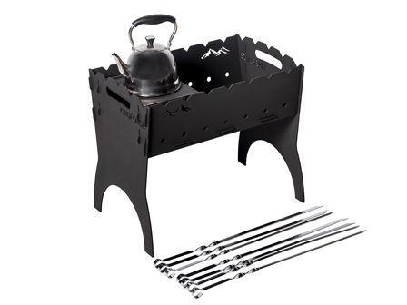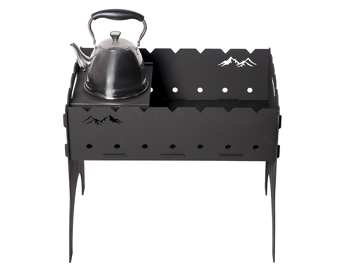 - Удобная конструкция с подставкой под чайник позволяет быть мангалу компактным и мобильным - Вы можете взять его с собой на природу, кемпинг или легко перемещать его на своём участке.