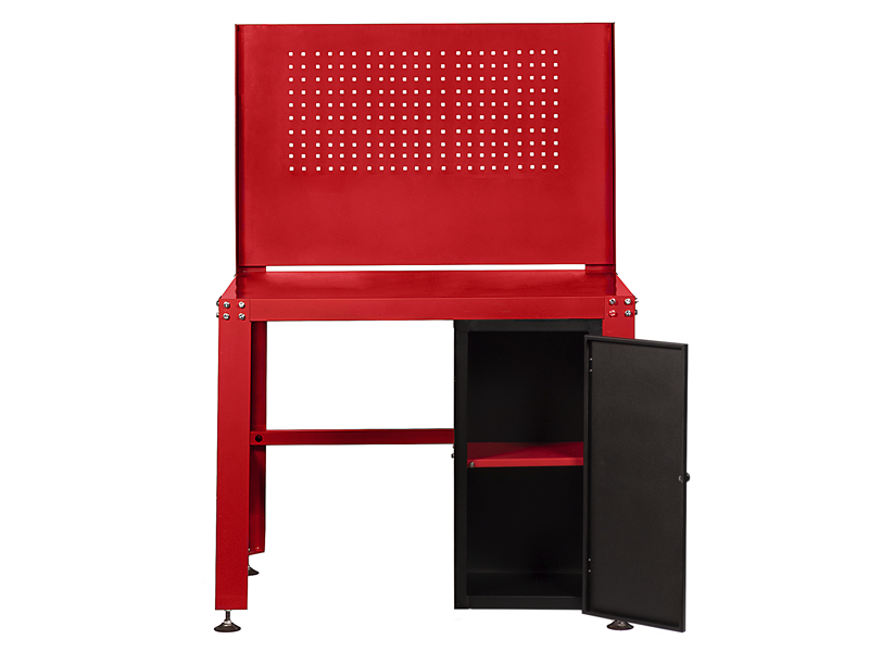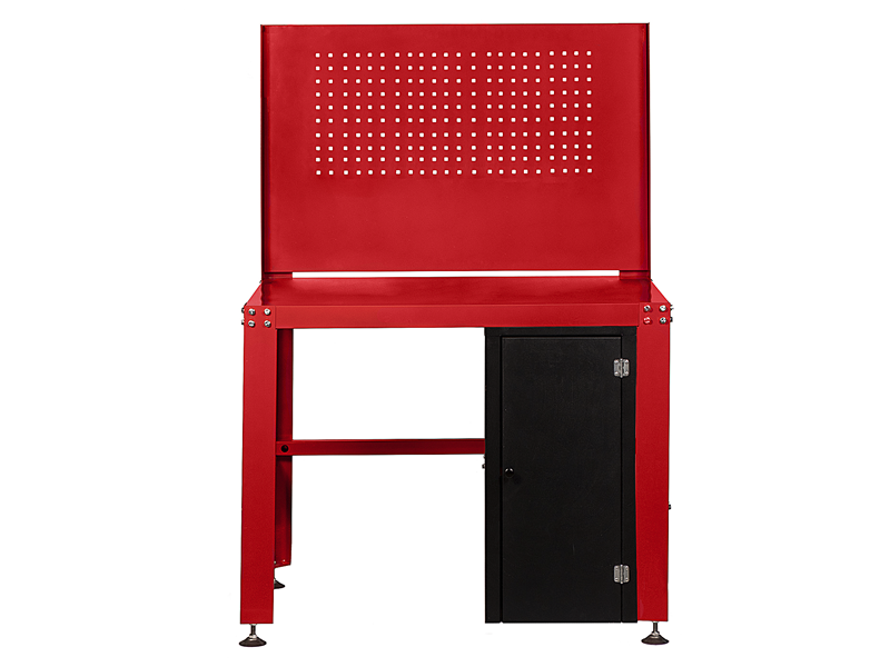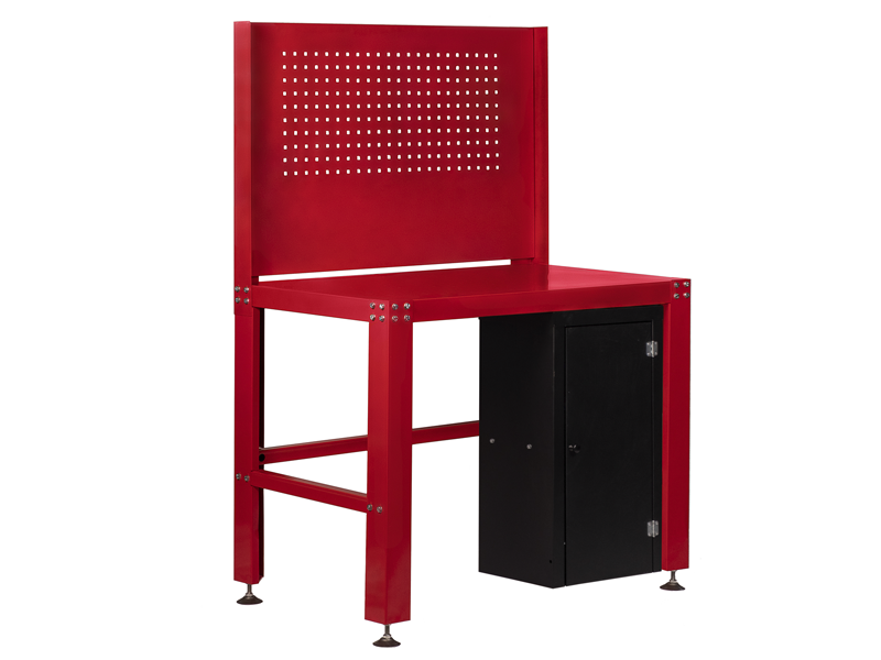 Верстак металлический с перфорацией и тумбой.