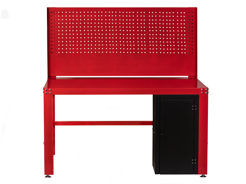 Металлические слесарные верстаки предназначены для удобной организации рабочего места на производстве, в учебных заведениях, мастерских и гаражах. Верстак с вертикальной перфорацией и одной тумбой в комплекте.