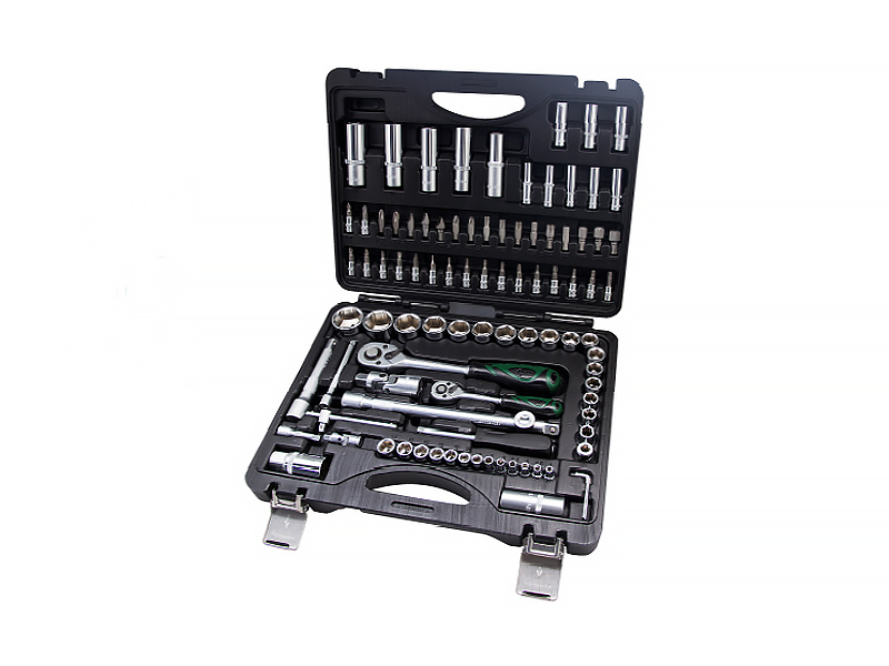 - Инструмент в комплекте трещотка, вороток для головок, рукоять для бит, шестигранники