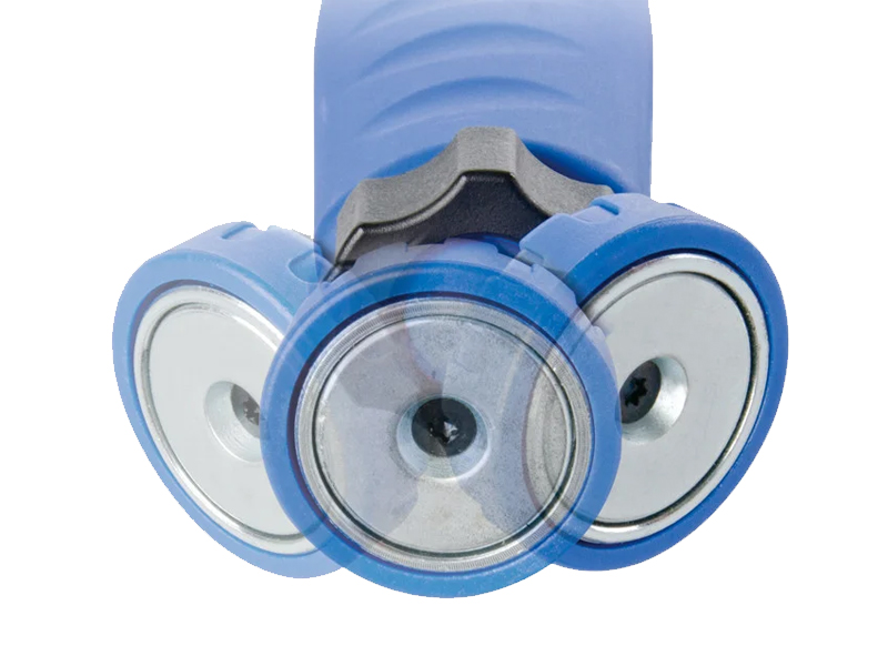 - Магнитное основание на шарнире: фонарь можно установить под любым углом на любую металлическую поверхность.