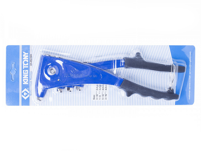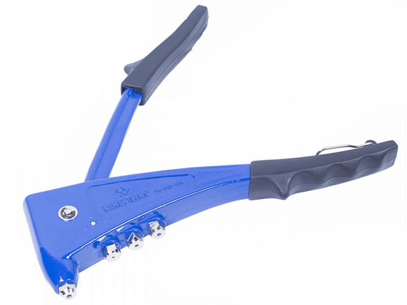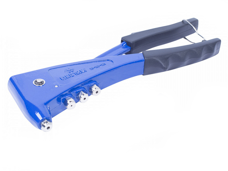 - Заклёпочник оснащён зажимными губками из твёрдосплавной стали, адаптерами для заклёпок разного диаметра, специальным ключом, эргономичными рукоятками из резинопластика.