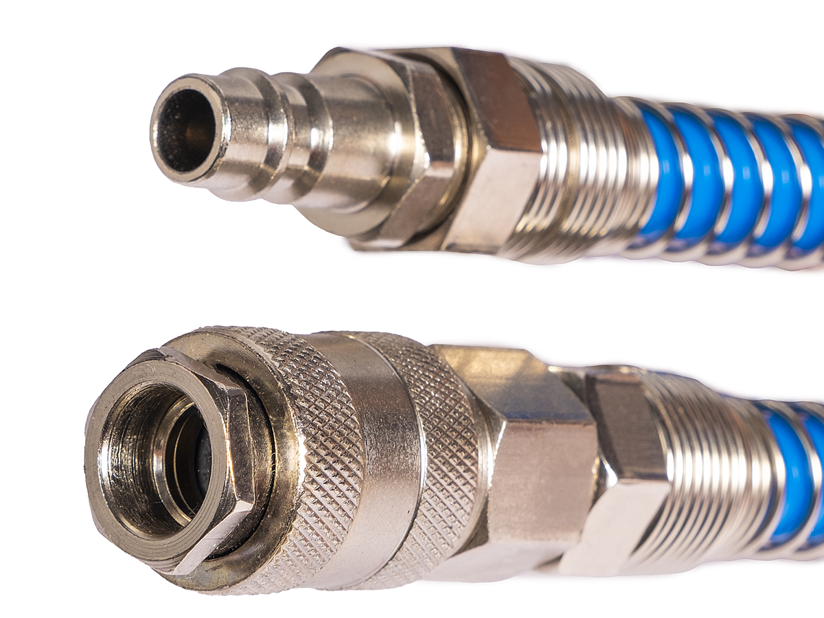 - Пневматический спиральный шланг длиной 12 метров, внутренний диаметр 8 мм (наружный диаметр 12 мм).