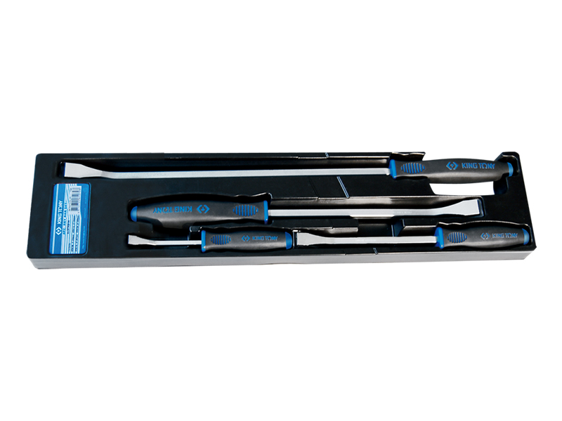 Набор слесарных монтировок 204-608 мм, пластиковая рукоятка, 4 предмета KING TONY 9TK014 состоит из четырех слесарных монтировок различной длины с прорезиненными рукоятками. Используется в шиномонтаже и демонтаже во время проведения силовых работ с деталями и узлами автомобиля.