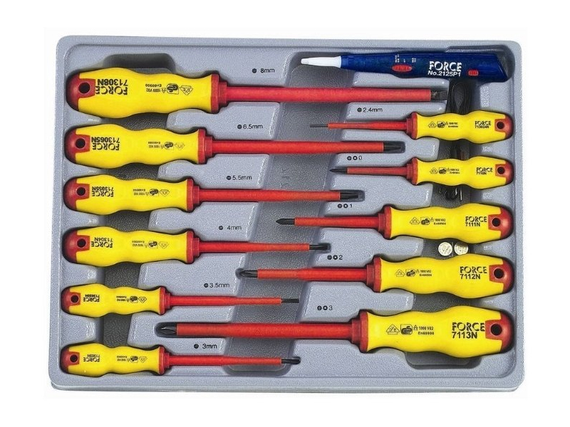 - Набор отверток в ложементе диэлектрические 12 предметов подходит для монтажа и демонтажа прямых и крестовых резьбовых соединений.