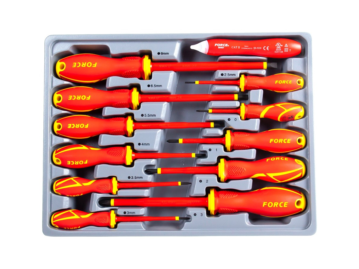 - Набор отверток в ложементе диэлектрические 12 предметов подходит для монтажа и демонтажа прямых и крестовых резьбовых соединений.