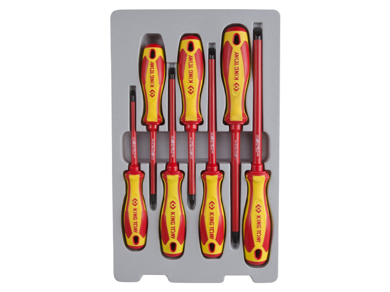 Набор отверток в коробке KING TONY диэлектрические 7 предметов 30617MR подходит для монтажа и демонтажа прямых и крестовых резьбовых соединений. Набор из 7 отверток позволяет работать с различными размерами гаек и винтов. Диэлектрическое покрытие стержней обеспечивает безопасность для использования под напряжением. Двухкомпонентные рукоятки не скользят в руке.