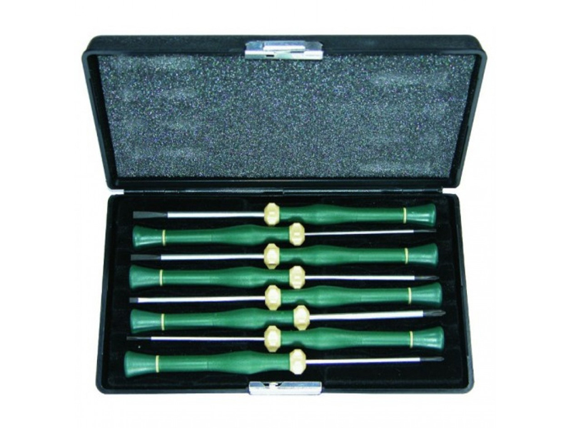 Набор мини отверток для точной механики 8 пр. FORCE 2087 изготовлен их хром-ванадиевой стали. Применяется часовыми и ювелирными мастерами. Поставляется в пластиковом кейсе с металлическим замком.