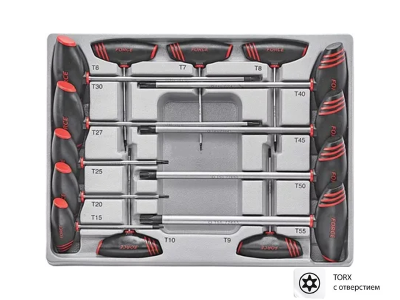 - Набор Т-образных отверток подходит для использования с резьбовыми соединениями, которые обладают внутренним профилем TORX с отверстием.