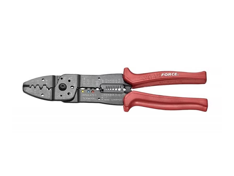 Универсальные зачистные клещи с обжимами контактов 245 мм FORCE 6806 - ручной, многофункциональный электромонтажный инструмент для зачистки проводов, обжима изолированных и неизолированных наконечников, а также перекусывания винтов.