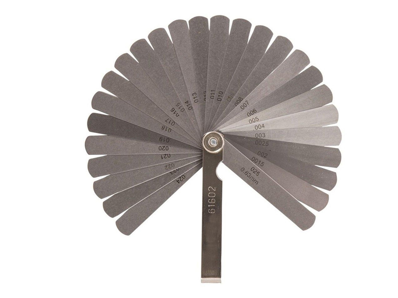- 26 щупов: 0.04, 0.05, 0.06, 0.08, 0.1, 0.13, 0.15, 0.18, 0.2, 0.23, 0.25, 0.28, 0.3, 0.33, 0.35, 0.38, 0.4, 0.43, 0.45, 0.48, 0.5, 0.53, 0.55, 0.58, 0.6, 0.63 мм.