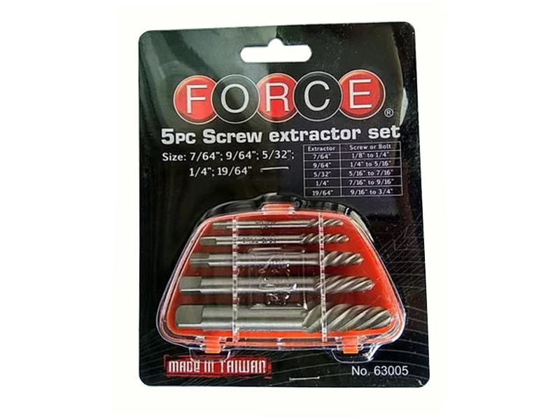 Рекомендуемые диаметры сверления отверстий для винтовых экстракторов:- 5/64" (2 мм) для болтов, шпилек 1/8”– 1/4” (3- 6 мм);