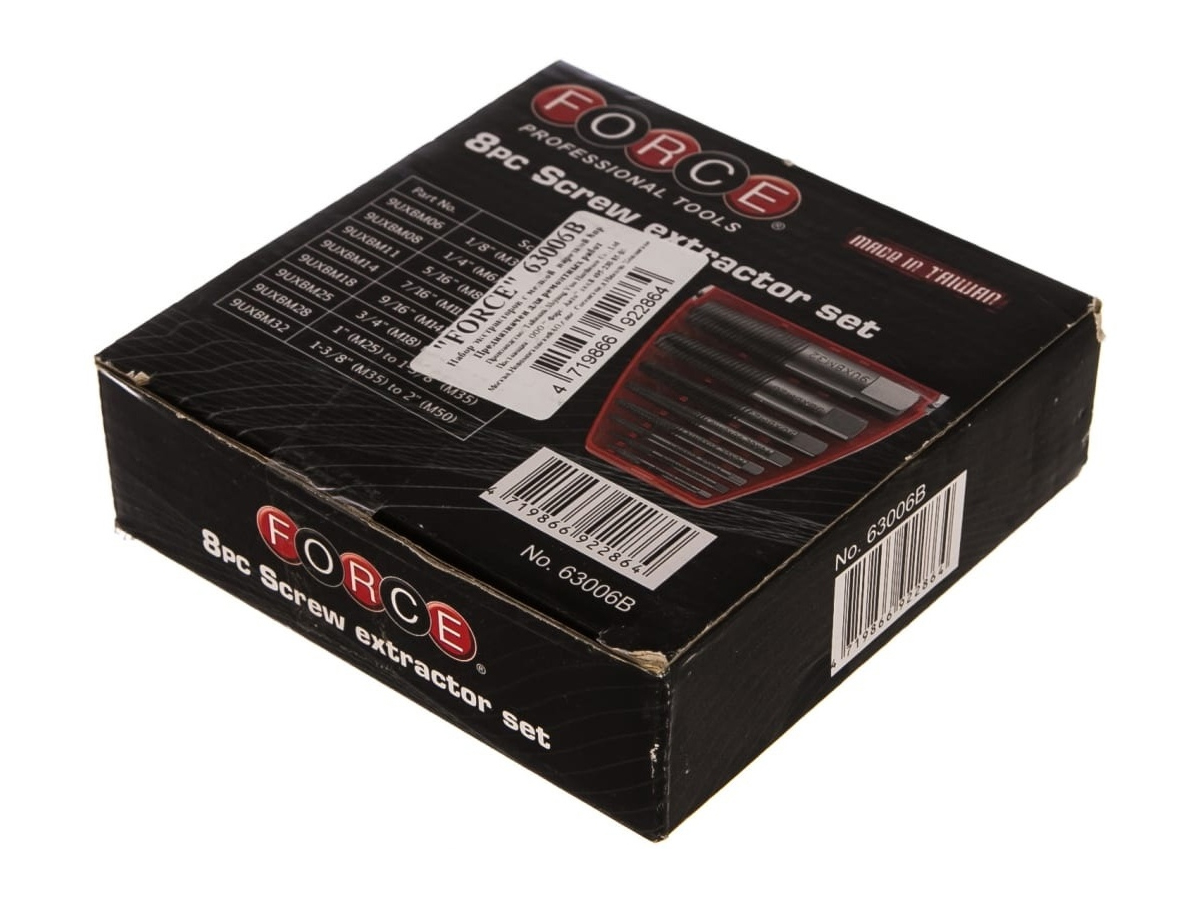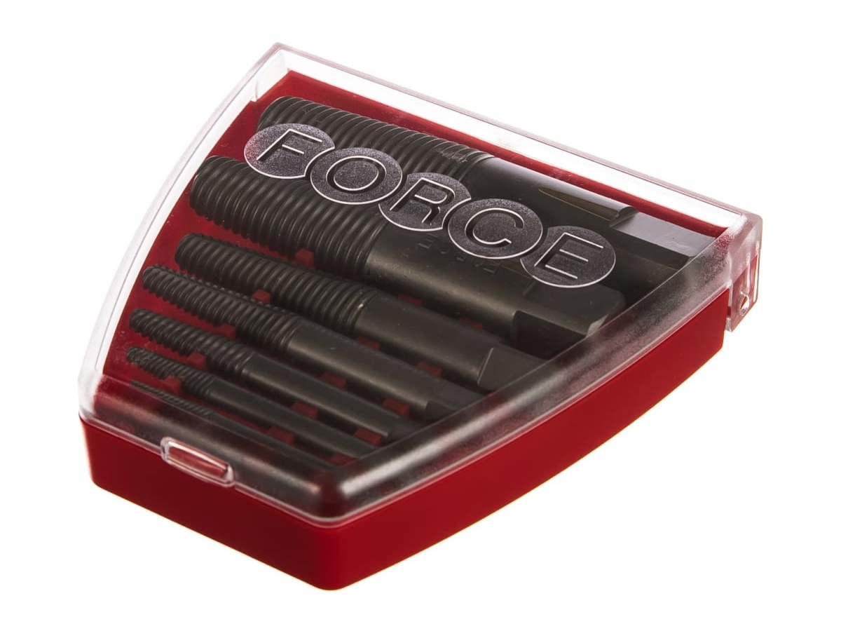 Набор экстракторов FORCE 8 пр. 63006B используют для быстрого демонтажа сломанных винтов, болтов и шпилек во время ремонта и обслуживания автомобилей, промышленного оборудования и различных конструкций.