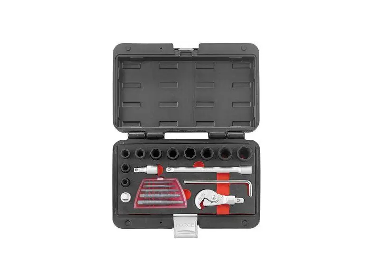 Набор спецключей для работы с поврежденными крепежами 20 предметов FORCE 920U3 упрощает выворачивание сложного крепежа, в том числе с сорванными гранями .