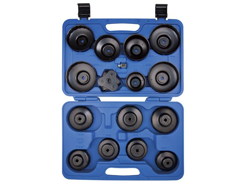 Съёмники изготовлены в форме «чашек» методом штамповки из листового металла, и покрыты специальным материалом, защищающим инструменты от коррозии. На каждой чашке есть усиленная площадка с присоединительным квадратом 3/8". В комплектацию набора также входят универсальный съёмник типа «краб» и переходник с 1/2" на квадрат 3/8", позволяющий использовать вороток, трещотку или динамометрический ключ соответствующего формата, а также торцевую головку или накидной ключ 21 мм.