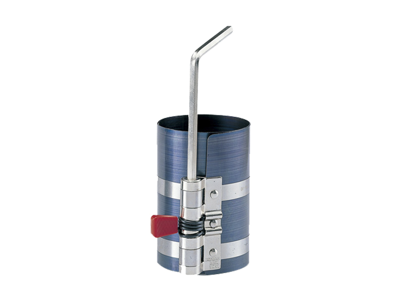 Оправка для поршневых колец предназначена для установки поршня в цилиндр. Оправка утапливает и фиксирует поршневое кольцо в канавке поршня, позволяя без дополнительных усилий монтировать поршень в головку блока цилиндров. Специальный пружинный замок надёжно фиксирует положение оправки на поршне, а после монтажа легко возвращается и исходное положение.
