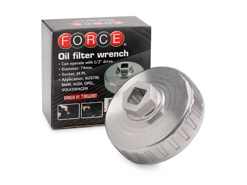 Съемник масляных фильтров специальный инструмент, предназначенный для установки и демонтажа масляных фильтров автомобиля. Модель 6317414 позволит быстро и эффективно произвести работы по замене масляного фильтра диаметром 74 мм. Съемник представляет собой 14-граную конструкцию чашечного типа, которая гарантирует прочную фиксацию, не боясь соскальзывания и уменьшая возможность для повреждения масляных фильтров. Чаша имеют квадратное отверстие, под наконечник торцевого ключа с посадочным квадратом 1/2", может быть использован с гаечным ключом на 27 мм. Применяется в автомобилях: BMW, AUDI, WOLKSWAGEN, OPEL, AUSTIN, MERCEDES-BENZ.
