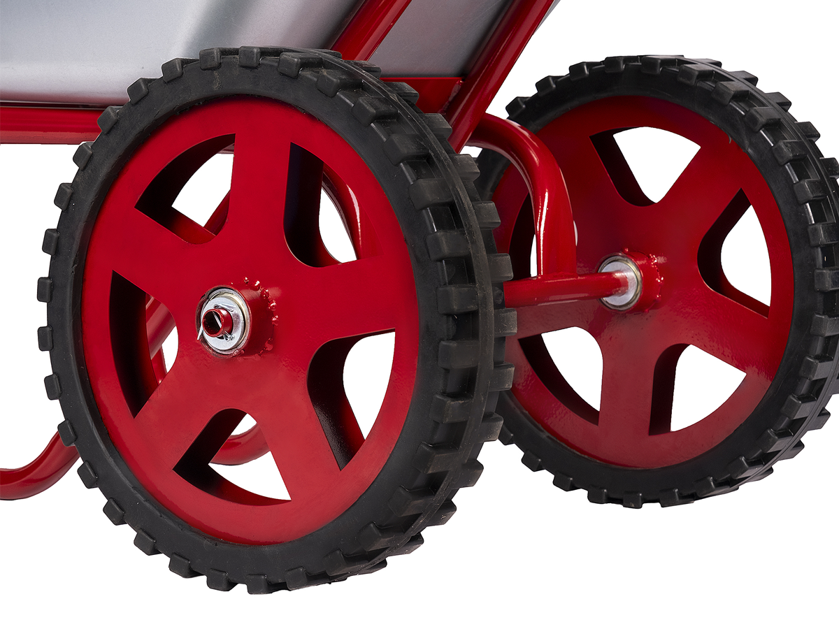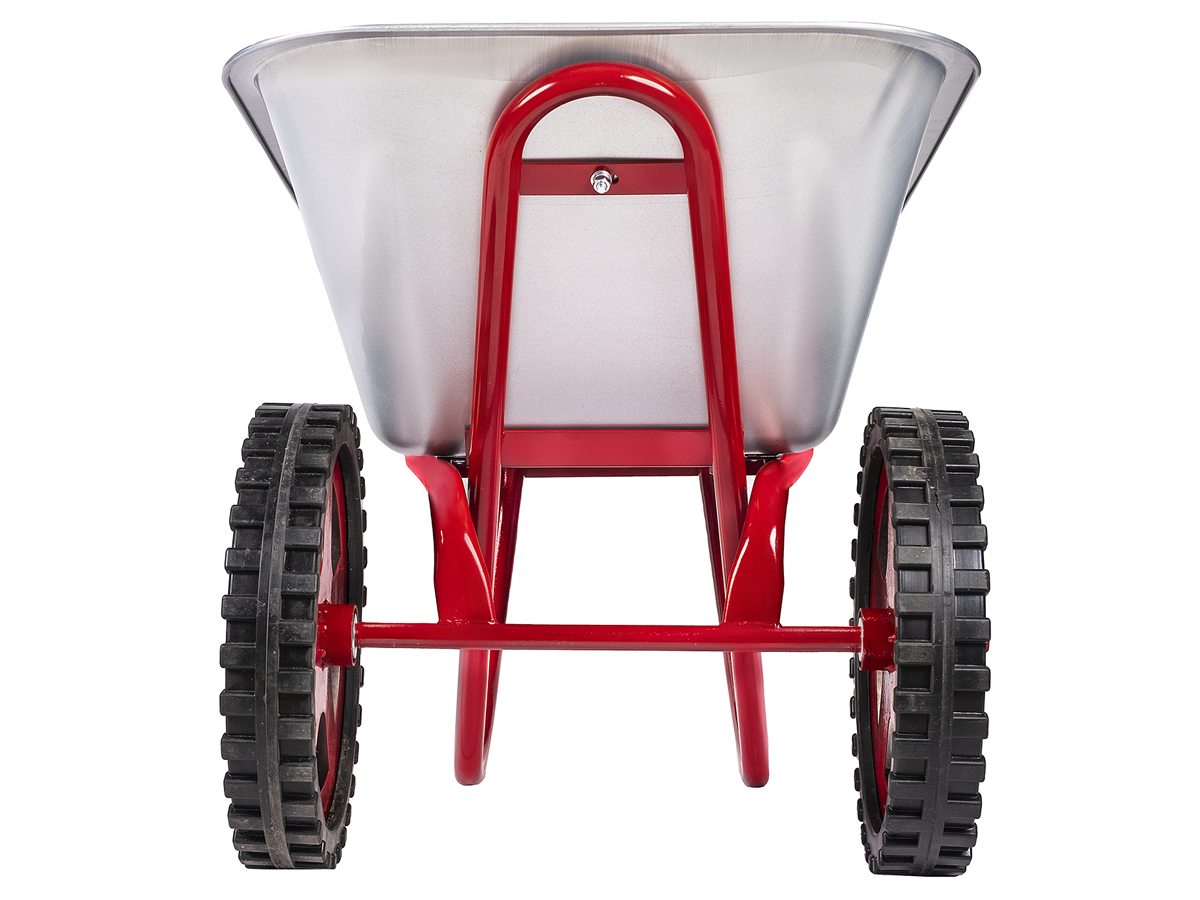 - Cтальной кузов объемом 78 л для сыпучих грузов имеет цинковое покрытие, обеспечивающее защиту тачки от внешних воздействий.