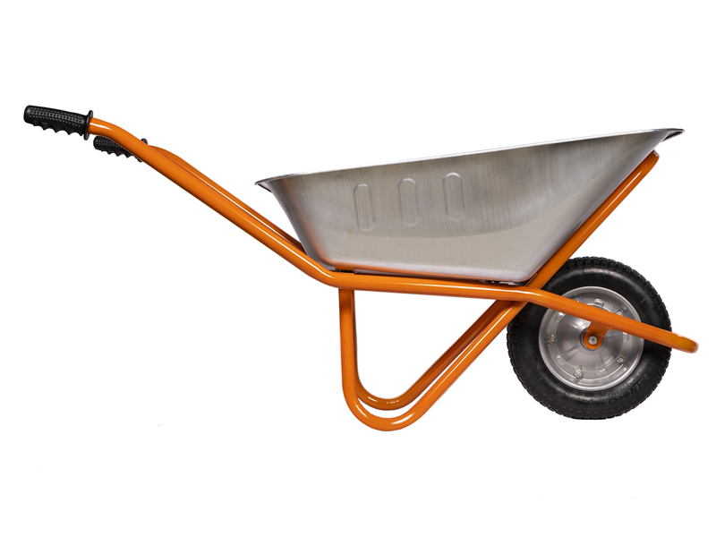 - Cтальной кузов объемом 78 л для сыпучих грузов имеет цинковое покрытие, обеспечивающее защиту тачки от внешних воздействий.