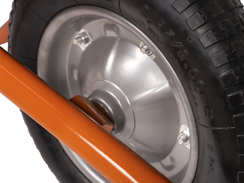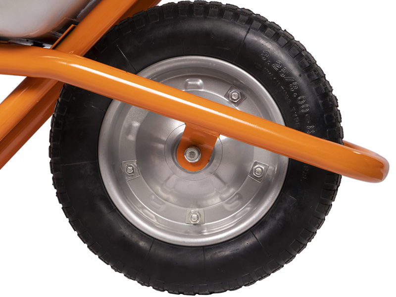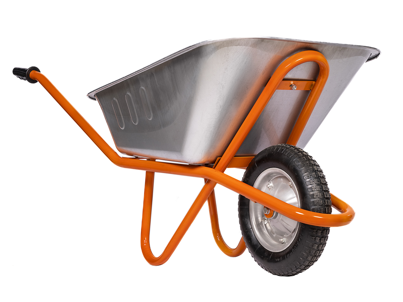 - Cтальной кузов объемом 78 л для сыпучих грузов имеет цинковое покрытие, обеспечивающее защиту тачки от внешних воздействий.