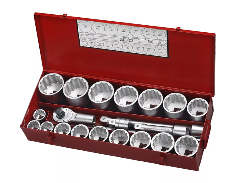 - 17 12-гранных головок: 36, 38, 41, 46, 50, 54, 55, 58, 60, 63, 65, 67, 70, 71, 75, 77, 80 мм.