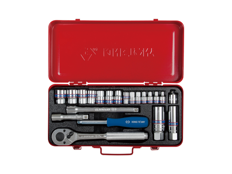 Набор инструментом торговой марки KING TONY включает в себя торцевые головки и принадлежности, предназначен для монтажа и демонтажа крепёжных узлов различных изделий, устройств и агрегатов.