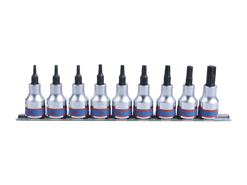 - Торцевые насадки TORX 3/8": Т10, Т15, Т20, Т25, Т27, Т30, Т40, Т45, Т50.
